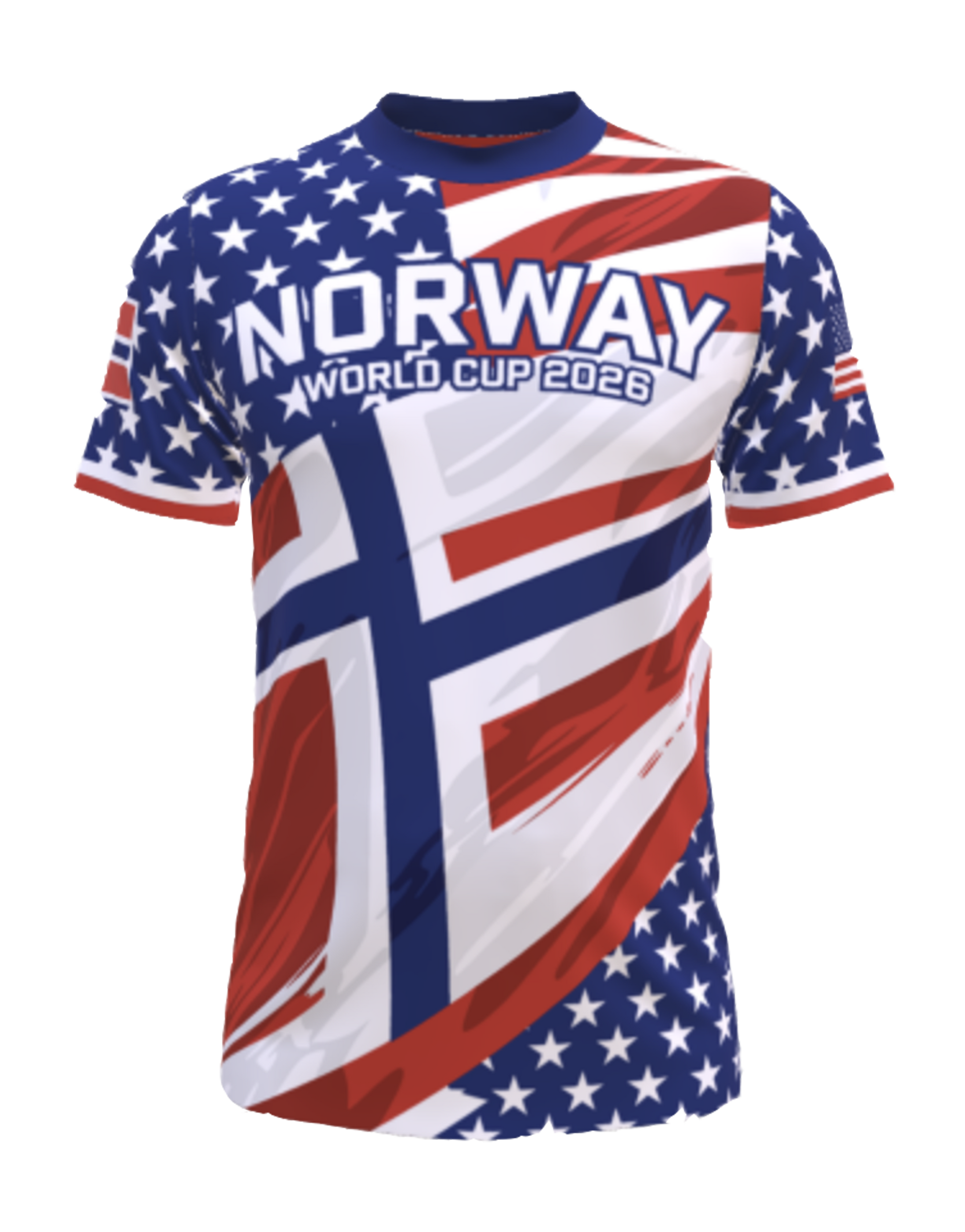 Unisex must have supporterdrakt som et fantastisk minne om kampene Norge skal spille i USA. Teknisk materiale med design fra det norske og amerikanske flagget i pustende 100% polyester. Sublimert trykk gjør at trykken holder like lenge som selve plagget.